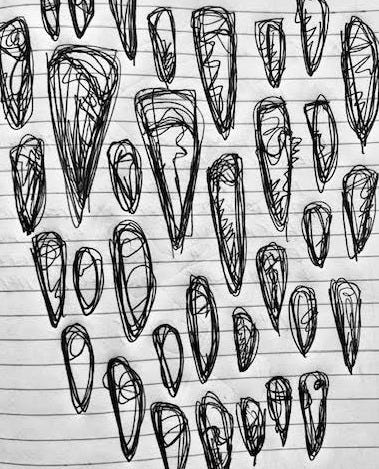 A quick and spontaneous sketch on the train. Seeds as teeth and then teeth as seeds. It was raining too so I’m sure that’s in there. I remember feeling weirdly ‘attacked’ as I made this, but it was cathartic.